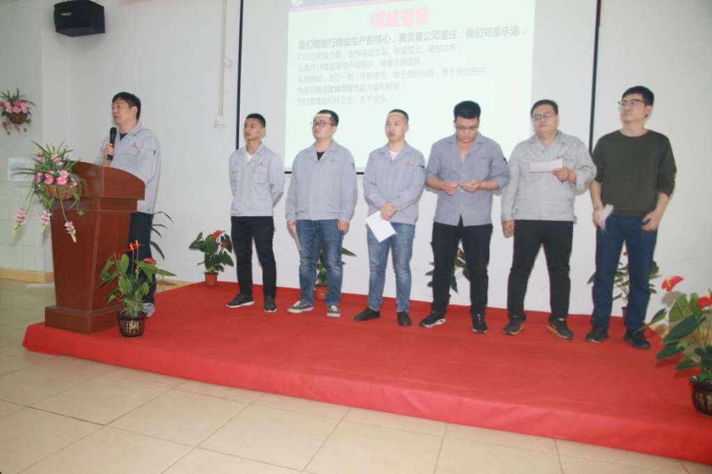 接下来,重庆凯善咨询精益高级顾问,东运镁业精益项目总监白老师做了精益整体规划及实施计划的介绍,让东运镁业全体人员了解接下来的精益方向和路径,并明确了组织架构和职责,在精益办领导王松副总经理的带领下,精益办负责小组团队及主要项目团队人员上台进行了庄严的宣誓,向公司立下誓言,绝对退缩,一定不负领导期望,达成既定的精益目标。 为了更好的传递精益思想,陈总和李董像各级干部及参会的供应商领导进行了授书。